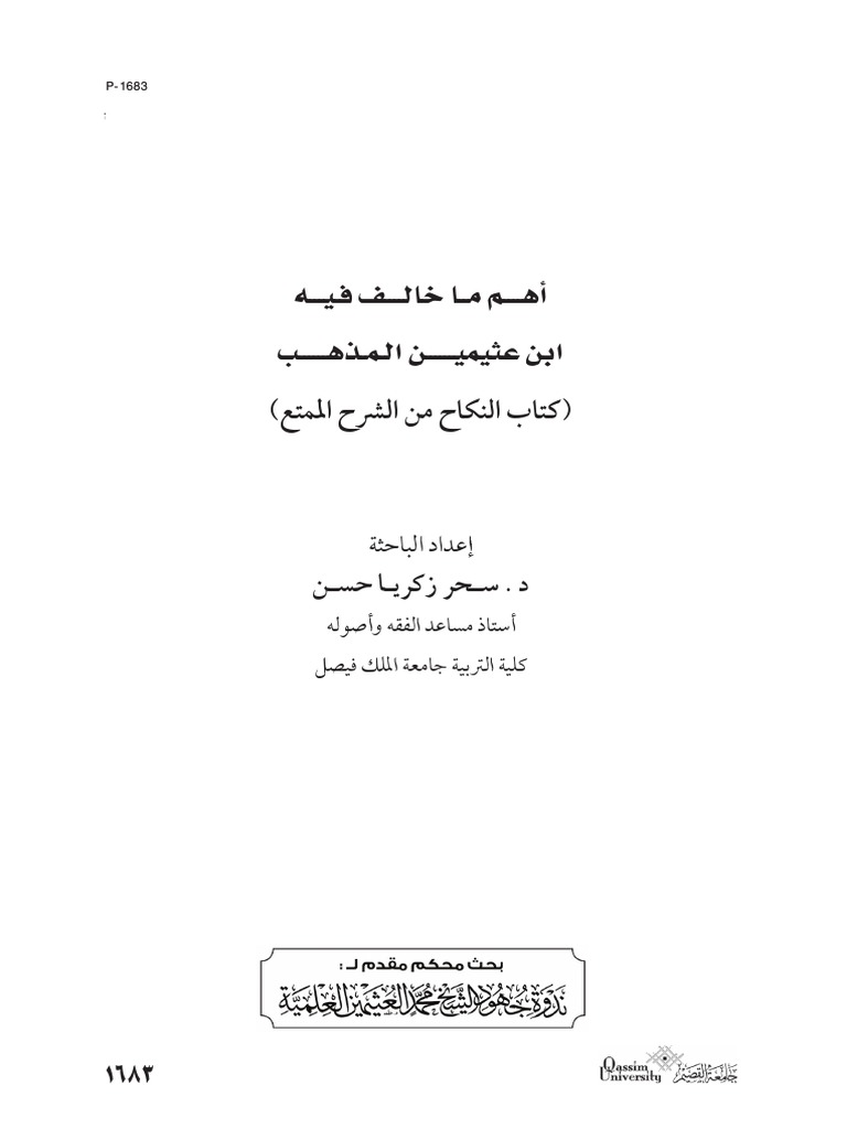 أهم ما خالف فيه الشيخ ابن عثيمين المذهب كتاب النكاح من الشرح الممتع Pdf
