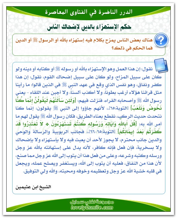 حكم الاستهزاء بالدين لإضحاك الناس موقع البطاقة الدعوي