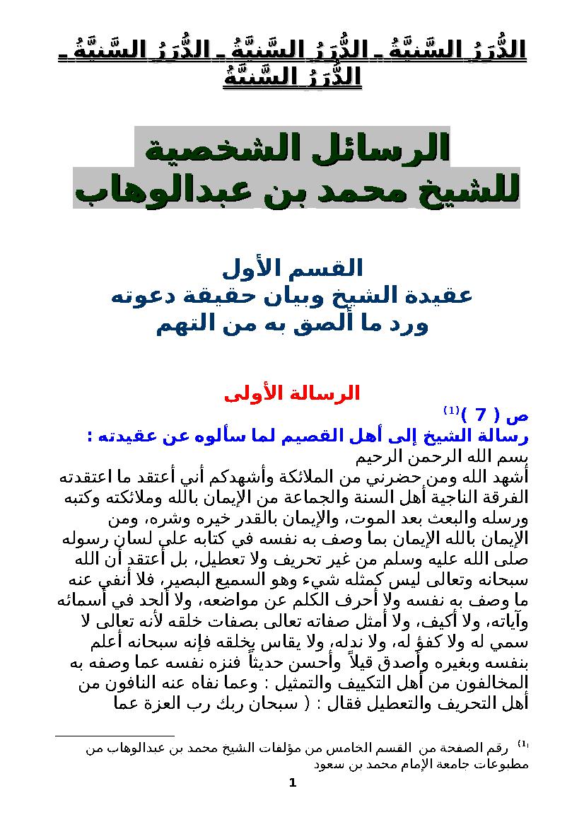 الدعوة الإصلاحية للشيخ محمد بن عبد الوهاب رحمه الله 49 المصدر السعودي