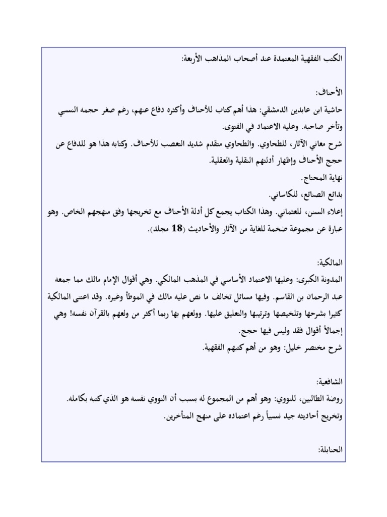 الكتب الفقهية المعتمدة عند أصحاب المذاهب الأربعة Doc