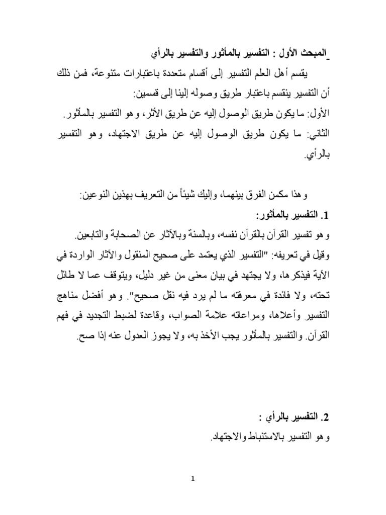 بين الفرق بين التفسير بالمأثور والتفسير بالرأي الثاني ثانوي خبر جديد