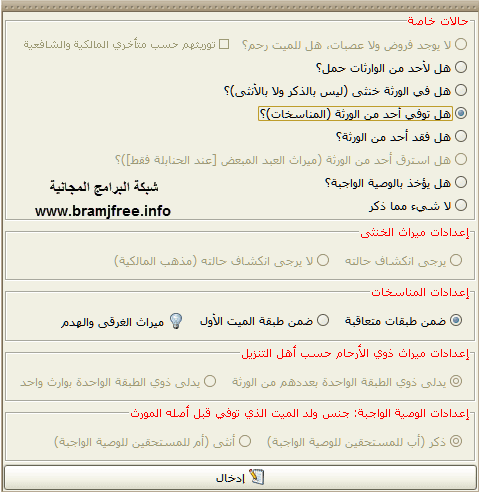 برامج اسلامية برنامج حساب المواريث الشبكة نت الشبكة نت