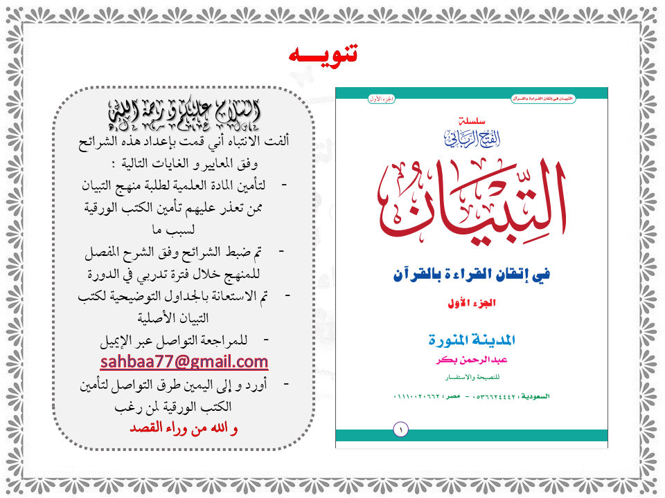 دورة التبيان في في إتقان القراءة وتجويد القرآن الكريم مركز المشير للاستشارات التعليمية والتربوية