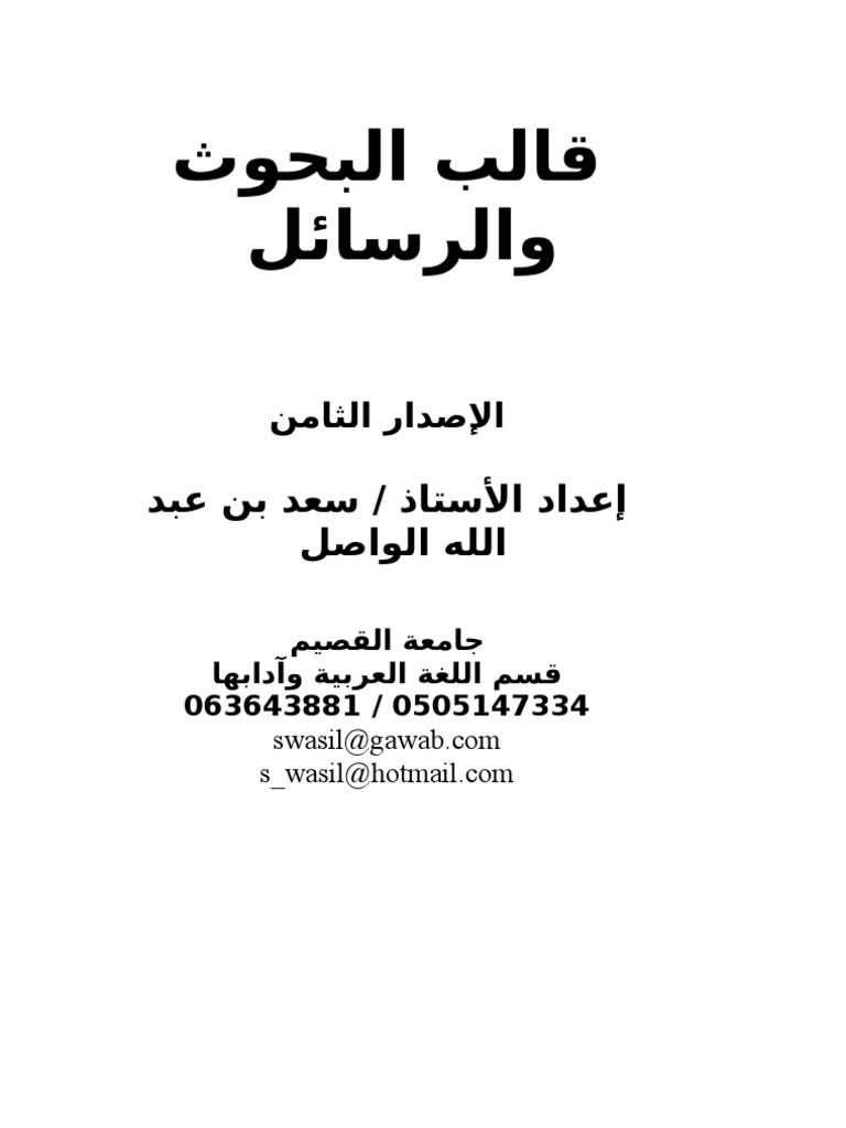زهرة المتوسط شرح تركيب قالب البحوث والرسائل على الوورد