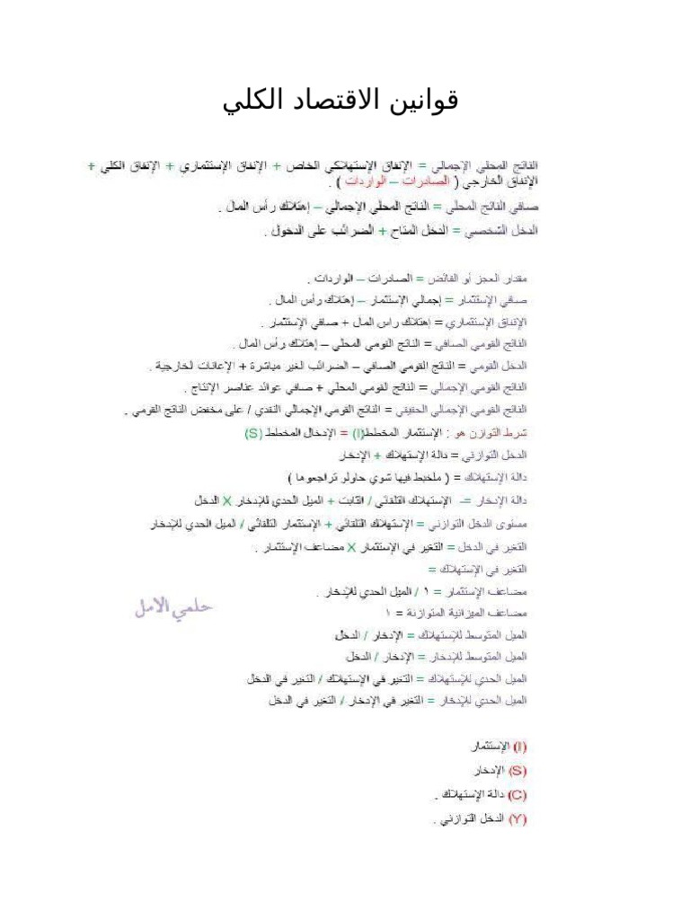 قوانين الاقتصاد الكلي 1