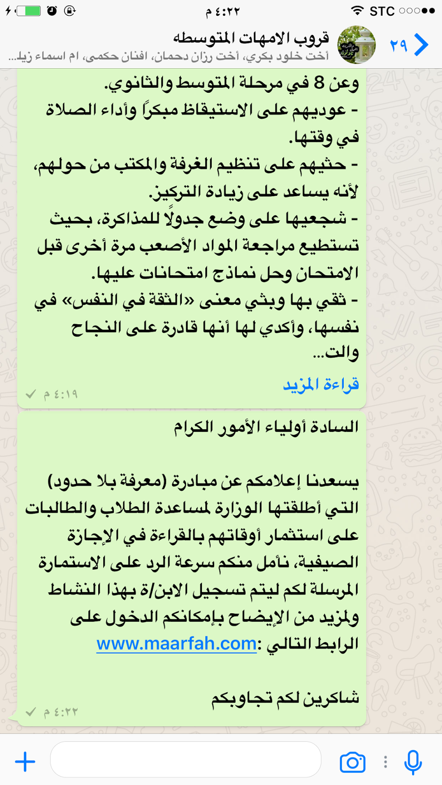 والمعرفة بلا حدود مبادرة مميزة من تكافل لجميع الطلبة وأسرهم ومدارسهم تهدف إلى حث الجميع على القراءة بلا حدود لإثراء معرفتهم وتحسين مستوى التعليم ورفع قدرات الطلبة في التحصيل العلمي وتنويع مداركهم الثقافية وتعدد مصادر المعرفة لديهم كما أنها تتماشى مع رؤية المملكة 2030. دعا قسم التوجيه والإرشاد بتعليم الخرج أولياء أمور الطلاب والطالبات للتسجيل في مبادرة مؤسسة تكافل وجاء في رسالة الدعوة ما يلي. مبادرة معرفة بلا حدود.