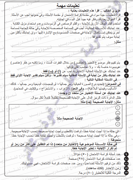 نماذج اسئلة واجابات 50 سؤال بمادة اللغة العربية من وزاره التربيه والتعليم للثانويه العامه 2018