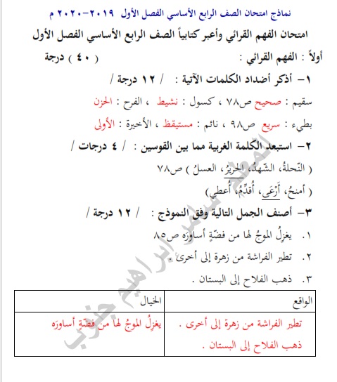 نموذج سنوات سابقة بالصور الاختبار الوطني لمادة اللغة العربية للصف الرابع منتديات صقر الجنوب